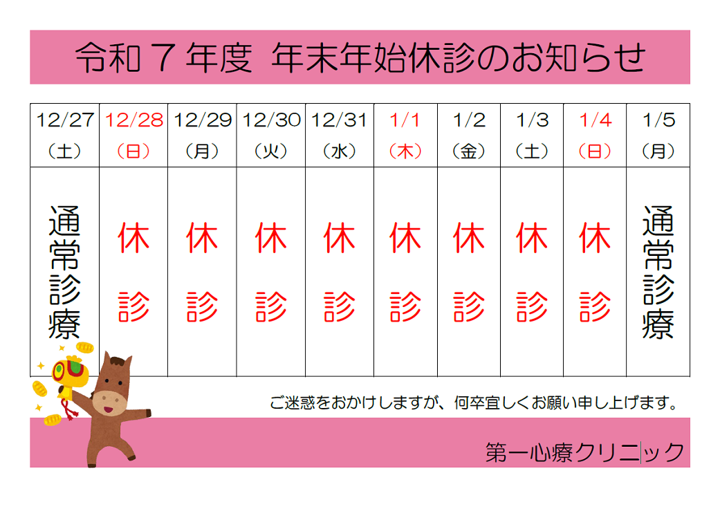 ・2025年12月28日(日)~2026年1月4日(日)休診